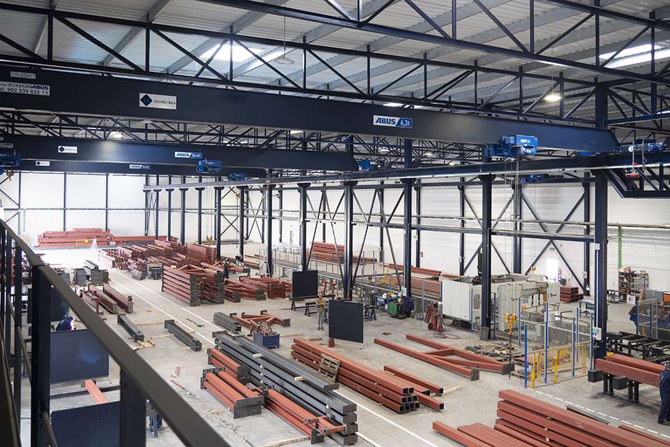 在機(jī)械設(shè)備中,您可以發(fā)現(xiàn)5臺(tái)最新一代的安博橋式起重機(jī),其起重量在6.3噸到16噸之間,跨度范圍為14.9米到21.1米。所有起重機(jī)均為采用焊接箱梁的ELK型單梁起重機(jī),這是在此載荷和跨度范圍內(nèi)的最佳解決方案。
