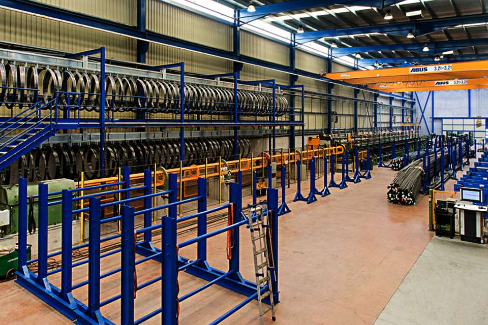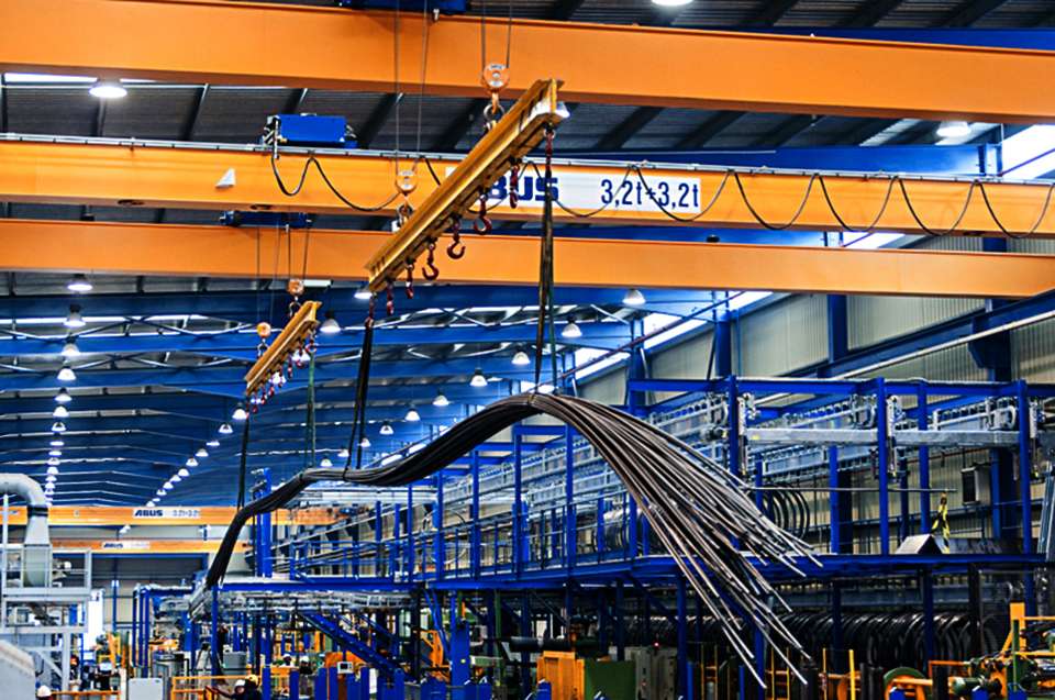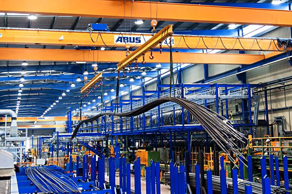 2015年,Arenys de Mar(巴塞羅那)正式啟用了新的生產(chǎn)設(shè)施,以提高每天約50000米冷拔管的生產(chǎn)能力。安博受托供應(yīng)另外五臺(tái)負(fù)載能力為3.2+3.2噸、跨度21.8米的ZLK型雙梁橋式起重機(jī)。這些ZLK型起重機(jī)加強(qiáng)了位于Premià de Dalt(巴塞羅那)和位于Ramon (西班牙列伊達(dá))的子公司TAP Tubos de Acero de Precisión工廠的起重機(jī)園區(qū)。2011年,兩臺(tái)安全起重3.2+3.2噸、跨度21米的ZLK型雙梁橋式起重機(jī)完成安裝,該處還安裝了一臺(tái)負(fù)載能力為500公斤、跨度6米的LS型立柱式旋臂起重機(jī)。